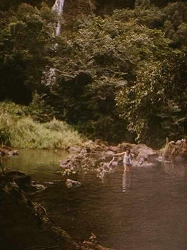 Nena crosses the Wialua River below Hidden falls.